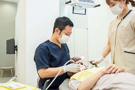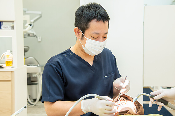 一般歯科では、むし歯や歯周病などに対応した治療を行っております。患者さまが抱える歯やお口のお悩みは、人それぞれ違います。当院では患者さまのお話を丁寧にお伺いしたうえで、その患者さまのお悩みに応じた適切な治療をご提供しております。歯の痛みや出血など、どんなささいな症状でもかまいません。お気軽にご相談ください。