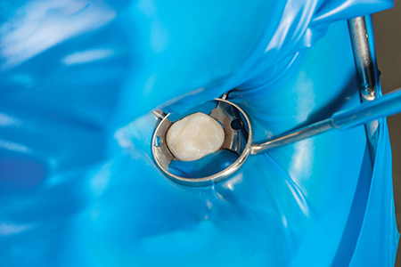 根管治療を行う歯以外を、ラバーダムと呼ばれるゴムシートで覆うことで、治療部位以外の保護、誤嚥防止といった効果が得られます。これを「ラバーダム防湿」といいます。さらに、唾液などによる細菌汚染を防ぎ、むし歯の再感染リスクを下げることも可能です。