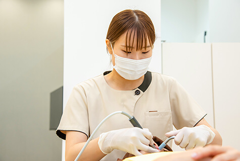 フッ素や専用器具を使用して、普段のセルフケアでは取り除ききれない歯の表面の汚れやバイオフィルムを、可能な限り除去します。