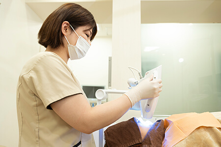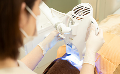 ホワイトニングでは、歯を白くするだけでなく、歯の表面をコーテイングする「ポリリン酸ホワイトニング」を採用しています。ポリリン酸ホワイトニングは、従来の治療よりも低刺激で、歯にしみる不快な感覚を可能な限り抑えることができます。痛みが苦手な患者さまも、負担を抑えながら歯を白くできます。